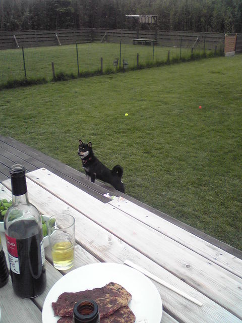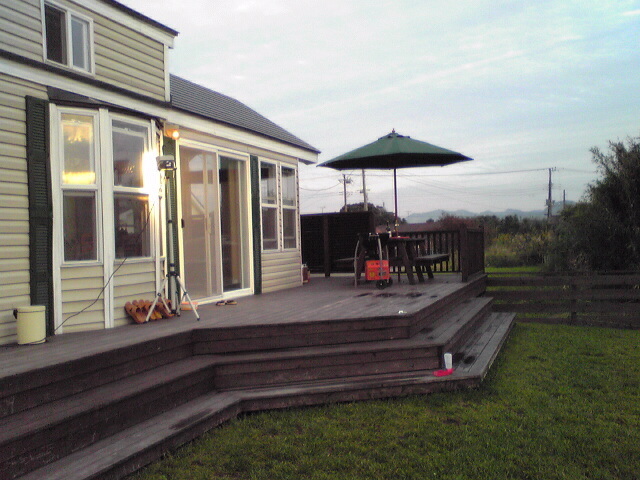 ウッドデッキでのんびり食材を炙って飲んで食べて・・・。