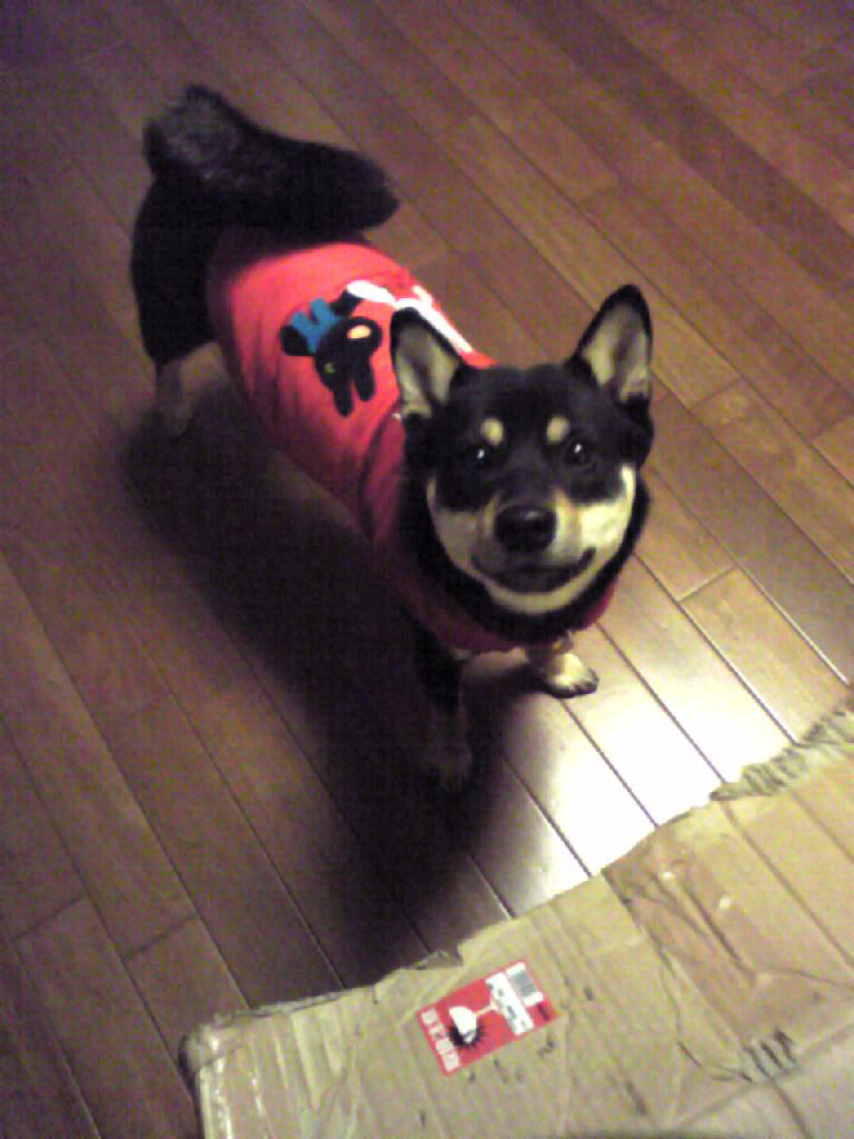 くらい夜道の黒柴はこれぐらい着ないと目立たないので。